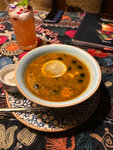 Осталась очень довольна визитом! С первых минут порадовала уютная атмосфера: мягкий свет, тёплые оттенки в интерьере, удобные диваны и приятный аромат специй создают ощущение, будто ты оказался в гостях у радушных хозяев. Кубанский борщ — наваристый, густой и по-домашнему насыщенный вкусами: свёклы, чеснока и ароматной зелени. Отличный чебурек с говядиной: хрустящая, пузырчатая корочка и сочная, пряная начинка внутри. Отмечу также чай «Тибетская ромашка» — нежный, расслабляющий, с тонкими травяными нотами, идеально завершает трапезу. Немного расстроила музыка и то, что нам не предложили зал, отделённый от кальянной зоны. Но в целом впечатление исключительно тёплое — сюда хочется возвращаться.
