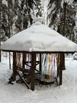 Красивое место, зимняя сказка. База отдыха посреди леса. Очень любим с друзьями приходить сюда гулять из Воейково. Сказочные дома для отдыха, утопающие в глубине леса, к ним ведёт деревянный настил. Несколько раз приходилось бывать внутри. Уютно и очень комфортно. Эко туризм, такскзать) Но сама бы не поселилась на длительное время. Зимой заниматься нечем, трассы активного отдыха далеко, цивилизация ещё дальше, ближайшие экотропы обходятся одним днем, сидеть в домике весь день не смогла бы, насколько комфортным бы он не был. Летом мошки и комары!!! Местность болотистая и их там тьма! Поэтому мои 5 звезд - непродолжительному отдыху с заходом в гости или посиделкам в кафе. Кафе супер! Вид из окна - релакс после трудовых будней. Облепиховый чай с апельсиновой цедрой - детокс в завершении весёлых выходных. Супчики вкусные, пельмешки домолепные, блинчики - всё в лучших традициях русской кухни. Спасибо! Будем продолжать заглядывать!