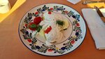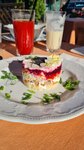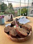 Поскольку мы жили в этом отеле и знали, что терраса прекрасная, в первый же теплый вечер решили поужинать. Огромнейший плюс - ресторан, как и отель, на возвышенности, поэтому хорошие виды на заднепровскую сторону (в том числе на нижний внутренний дворик с травой, цветами и грядками). Вокруг много зелени. Угловой столик в «стеклянной» части - ммм, слегка паришь над пейзажем)))) Нам повезло, в дополнение в этой части ресторана не было никого, кроме нас. Меню - типичное для Смоленска, тут почему-то практически все рестораны независимо от класса, формата и цен предлагают плюс-минус одно и то же. Но вкусно, это факт. Комплимент - хлеб с «зеленым» маслом. Отличная подача борща (помимо сметаны, пампушки, сала - зеленый лук и горчица). Приличная уха с нежным расстегаем (пекарня тут своя, при отеле). Драники - ну они и есть драники, но тоже хорошие, тоненькие, с корочкой и укропом. Котлеты с пюре - аналогично. «Оливье» с лососем - приятный, можно чуть ярче сделать вкус. В целом - традиционно, вкусно, достойно сервировано. Если брать именно еду - не 100%-ные пять баллов (очень хотелось какое-то локальное блюдо попробовать, во Владимире вот салат «Калязин» дают, наверняка и в Смоленске есть что-то такое?), а если взять ужин в целом как паззл из множества кусочков - твердая пятерка. И прекрасная официантка Елизавета! С высоким уровнем душевности и чувством юмора (!), что почему-то редкость в смоленских кафе и ресторанах. Вот что с точки зрения еды точно интересненькое в этом ресторане - завтраки. Как люди, ежедневно тут завтракавшие - советуем. Есть позиции привычные, типа тостов, блинов, сырников и омлета. А есть интересненькое типа 1. сэндвича с яйцом Бенедикт, голландезом и лососем (один раз был безупречен, второй - передержали Бенедикт, не растекался желток) 2.крока на темном хлебе с тем же Бенедиктом и лососем 3.взбитого творога с ягодным соусом и фруктами (нежный, легкий, прямо отлично заходит на завтрак!) 4.английского завтрака с яйцами, беконом, колбаской, ржаными тостами. Каши тоже на уровне за счет добавок (сушеная клюква, орешки, фрукты). Из «соленых» каш забавное а-ля ЗОЖ - гречка с авокадо и семечками. P.S. Если кто с детьми - на нижнем уровне есть детская площадка. С открытой летней террасы она отлично просматривается, это удобно.