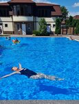 Атмосфера в этом спа-комплексе супер! Персонал замечательный. Если у них не забронировано, то попасть к ним не проблема. Есть домики для проживания, детская площадка, очень удобная детская зона в самом бассейне, там совсем не глубоко и она большая, деткам есть, где разгуляться)) с одной стороны бассейна шезлонги, с другой столы, за которые можно сесть покушать, даже еду можно заказать у них в ресторане.