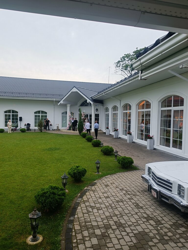 So.. Wedding. Guest ) The total number of guests is 50 people. The overall first view of the estate and the furnishings both outside and inside are very decent. Cozy, clean and atmospheric. A small estate on the territory and if the weather allows, then you do not want to leave the street. The lawn is perfect. The gazebo for the buffet is quite spacious. The thuja around the perimeter are very well maintained. Two disadvantages: 1. A very modest place was allocated for a photo zone on the street. 2. And the big minus is that there are absolutely no places where you can sit in the yard, take a break from the table and chat, especially in the evening in the warm season. (there are only two armchairs and a table in the corner of the territory). People were either sitting on the porch steps or on the sill slopes along the windows. Inside: a very decent renovation in snow-white tones. The chandelier is just a bomb. I made the room just gorgeous. The staff is courteous, the young guys are unobtrusive and attentive. There was no need to call anyone, all the changing of dishes and refilling of the glass were timely and on time. I noticed the very neat appearance and uniform of the staff. There are no questions about food at all. The serving of the dishes and the food itself were beyond praise. Respect to the cook and the team. It was very tasty for me. The dance floor is large, there is enough space for everyone. Cons: for a large banquet and a large number of people, especially young people, there are not enough places for photo zones both inside and outside. Therefore, I put a strong 4.