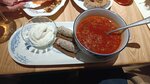 Настало время встретиться с друзьями, и вновь пора выбирать место. По правде сказать, в тот момент, когда мне на глаза случайно попался этот ресторан, у нас была бронь в другой. Но посмотрев фото, я решил, что должен сам это увидеть, потрогать, попробовать. И так, я даже не думал, что в этом памятнике архитектуры находиться ресторан. Это старинный сруб с резными наличниками на окнах, повидавшие многое за свою долгую жизнь, о ней вам расскажут на краткой экскурсии до или после обеда! Проходя в старинные деревянные ворота попадаешь, словно, на сотню лет назад, во двор купеческой усадьбы с конюшней и уютным двориком, в котором теперь расположилась летняя терраса. Все выполнено из дерева и камня и напоминает аутентичный бабушкин дом в деревне из детства. Персонал и атмосфера. На входе вас встретит очень милый и улыбчивый персонал, предложат раздается и пройти в бар Целовальня или в один из залов ресторана. Обстановка в помещениях очень приятная, вся отделка из натуральных материалов с имитацией старины, росписью по стенам и потолку, мягким освещением и старинными предметами, расставленными тут и там. Официанты очень вежливые, предусмотрительные, всегда следят за тем, что на столе, пора ли менять посуду или нести новое блюдо. Перед основными блюдами предлагают напитки, чтобы не скучать во время ожидания, впрочем ждать долго не придется, подача довольно быстрая. И, конечно, на столе зажигают классическую свечу в элегантном подсвечнике (она позже сыграет свою немаловажную роль). И конечно, камин в главном зале добавляет уюта и тепла, созерцание огня непременно скрасит вечер. Блюда. Общим блюдом нам посоветовали взять Утиный паштет с еловым вареньем, к нему в придачу идут большие мягкие гренки. Паштет нежнейший и вкупе с гренками очень интересное блюдо. Помимо гренок, ещё по умолчанию принесли хлеб со сметаной (приятно, обычно про него всегда забывается) Борщ из конины с копчёным салом (также намазанным на хлебушек) суп густой и насыщенный много мяса и овощей, вкусно и сытно! Томленый конь с кремом из печёной капусты - это два внушительных куска мяса, на подушке из пюре. Когда я добрался до блюда, я совершенно забыл о том, что пюре из капусты, на вкус очень напомнило обычное картофельное пюре. Очень сытно и вкусно, смело пробуйте! После борща, съел это все кое-как) Судак с пшеном и икорным соусом - это кусок рыбы (немного похоже на минтай, но мягче и приятней) сверху украшенный красной икрой и политый при нас соусом с травами (напомнило подачу в итальянском ресторане). Пшено приготовлено на молоке и имеет приятную консистенцию. В целом блюдо очень интересное и довольно сытное, порция хорошая. Салат с олениной, белыми грибами и овощами также представляет из себя большую тарелку с мясом и овощами на подложке из салата. Вкусный сытный салат. Пельмени с креветками и соусом из лука. Одни из немногих пельменей подаваемых тут без бульона, а в соусе. Внушительная начинка и интересный внешний вид, если вы любите лук, то и соус вам понравится, он разнообразит вкусовую гамму и смягчит мясо креветок . Напитки Особое внимание привлекают названия коктейлей , имеющих нашу местную Челябинскую стилистику в нейминге. Тут уж на вкус и цвет (негрони был весьма неплох) Иван чай с вареньем из голубики и клубники- это чудесный густой напиток с ярким ягодным вкусом и ароматом, г