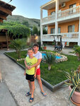 Очень красивый двор, до моря буквально 10 минут, все в шаговой доступности. Очень общительные и доброжелательные хозяева. Номера с холодильником, кондиционерами, отдельном душем и туалетом. Есть свой бар внизу. Столовая. Топчаны во дворе. Вид со второго этажа прям на горы, все очень красиво