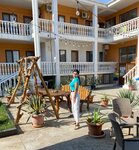 Очень хороший отель. Очень хорошие хозяева!!! Ездим три года туда и не разу не пожалели! Кухня находится в цоколе, вся необходимая посуда есть. На улице есть дополнительно мангал и казан. Номера просторные, есть кондиционер, холодильник, Wi-Fi, туалет, душ, шкаф для одежды. В общем, рекомендую! На против отеля находится бассейн на закрытой территории.