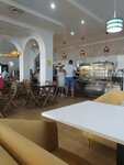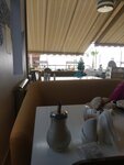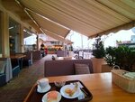 Очень приятное место с видом на море рядом с набережной. По сравнению с фото предыдущих лет обновлённый интерьер террасы стал лучше, появились удобные диваны с высокими спинками. Меню достаточно разнообразно, цены нормальные, всё было вкусное и свежее, есть кофе из кофемашины (капучино, американо). Брала 2 небольших сытных салата, один мини сырник и мини блинчик с творогом, и капучино - чек на 500р