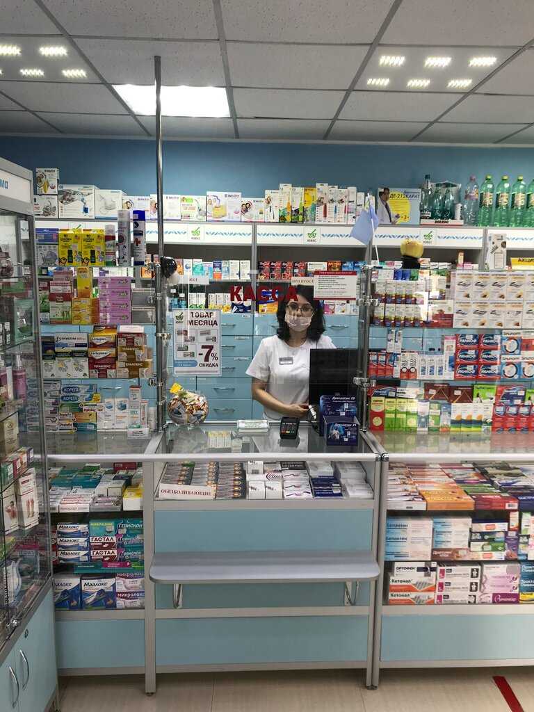 Аптека возле универсама, среди близлежащих отличается приветливым квалифицированным персоналом - сертифицированные фармацевты (провизоры) всегда помогут и подскажут в выборе препаратов, так же имеется отдел оптики и медтехники, стол для измерения давления, по сети аптек имеется дисконт, выдаётся на кассе.
