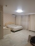 Вполне себе сносная гостиница. Номер чистый, тихо, с балкона вид на море. Пешком до него, конечно, далековато. Персонал вежливый. В номере есть холодильник, чайник, посуда, два телевизора в каждой комнате, интернет, работающий с переменным успехом. Из минусов могу отметить только светлое напольное покрытие, которое очень быстро пачкается даже если ходить без обуви. В этом случае можно было бы предусмотреть одноразовые тапочки. И второй минус - это пожелтевшие дырявые полотенца, которые уже давно пора списывать и уставшее постельное бельё. В остальном за полтора суток пребывания в гостинице ничего плохого сказать не могу. Ожидали худшего варианта за такую цену.