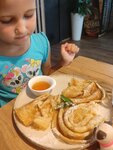 A nice cafe with good cuisine. They took okroshka, even the child liked it. Cheesecakes and pancakes are delicious and beautifully served. Julienne was also ordered, also an interesting authentic presentation, in a lid on a pot of baked dough. In general, the cafe is popular, so in the evening you can stay out of place in the season) there really aren't many tables. Another unpleasant phenomenon was the presence of a very annoying flying fly. Moreover, when going to dinner and breakfast, this unforgiven guest was present ((( Perhaps it is necessary to approach this issue more seriously.