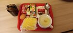 Кафе своего нет, но привезли специально к 5ти утра завтрак. Не особо съедобный, но тем не менее:)