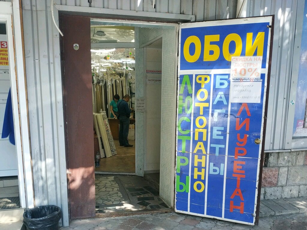 Маленький выбор обоев. Кроме обоев продаются светильники. Цены приемлемые. Магазин со стороны неприметен.