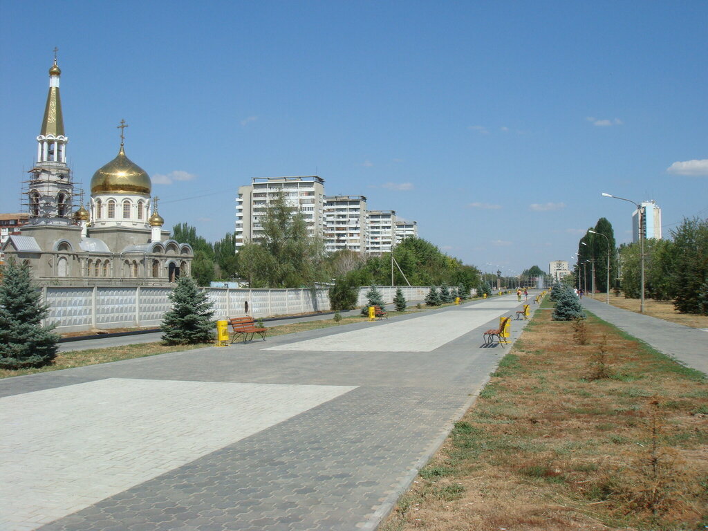 просторная чистая площадь у самого обычного советского памятника. Если пройти дальше - выйдете к Ахтубе и ее типично степным берегам. Слева от памятника гостиница Ахтуба, справа чуть подальше новый Храм. приятное место для прогулок. Был тут в 2010, но ничего не поменялось особенно там.