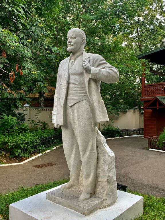 Большая статуя Ульянова-Ленина стоит напротив дома, где он жил с семьей 9 месяцев. Перед памятником клумба с розами, по бокам клумбы - скамеечки. Уютное место.