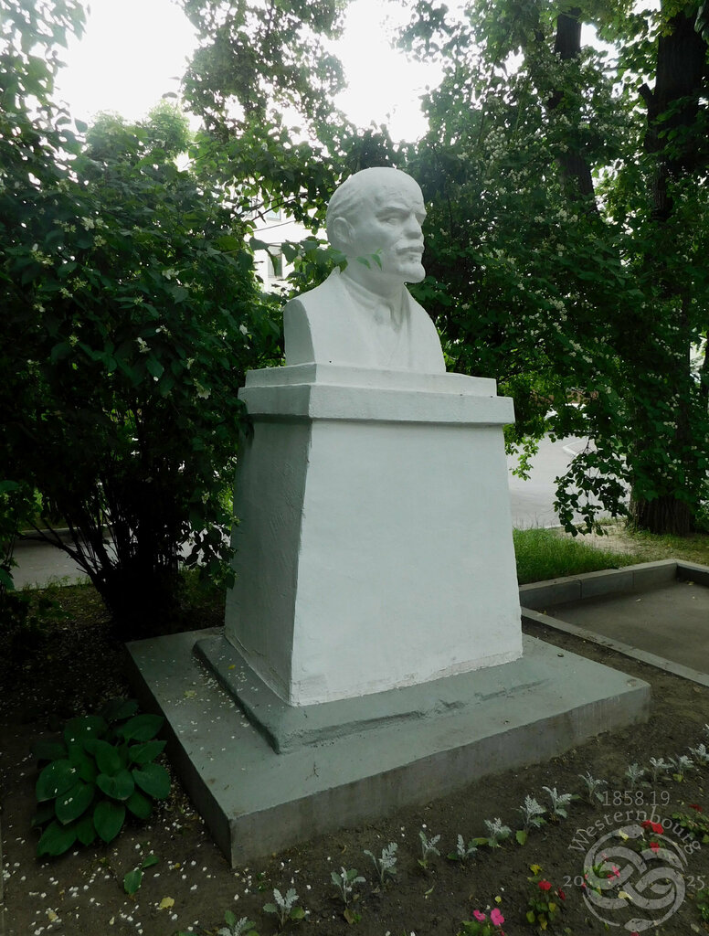Ильич стоит в небольшом парке, если можно так назвать, прямо между дорогой и жилыми домами, народу здесь мало, недалеко опорный пункт полиции, так сто порядок там всегда, а летом украшают цветами.