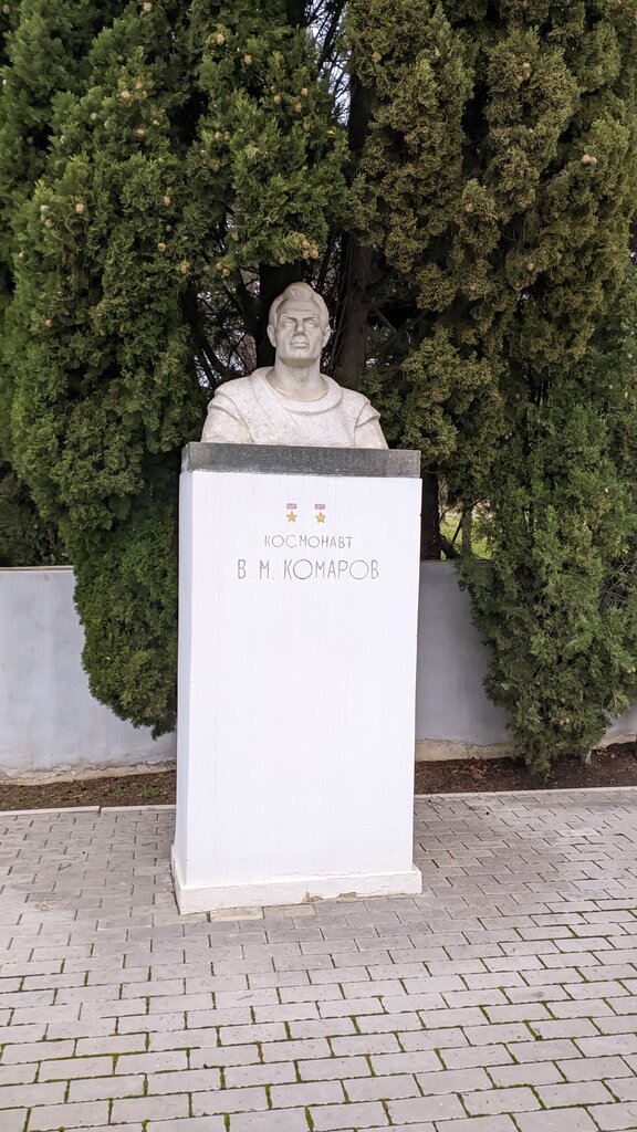 Бюст посвящён Космонавт Комарову в честь него был назван лагерь хочу всем посоветовать посетить это место в лагерь Артек