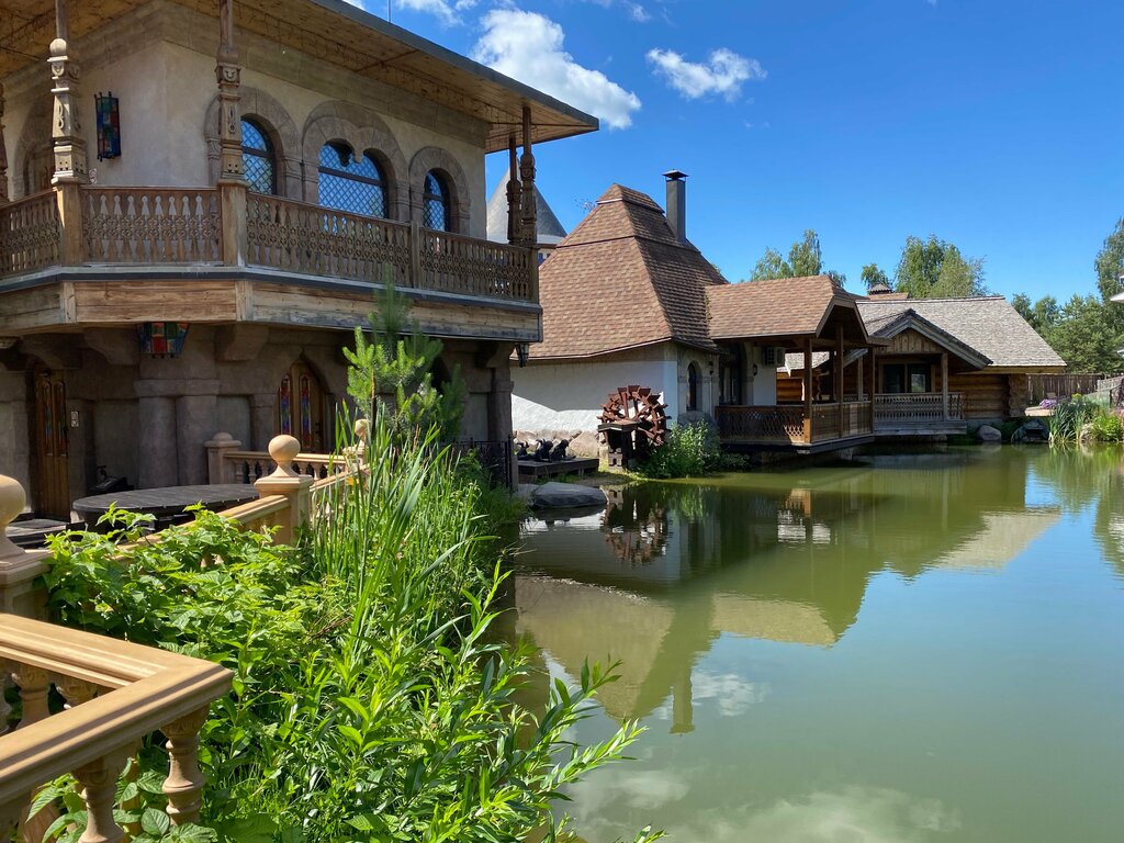 Очень приятное место! Жили три дня. Жили в отеле в номере. Обслуживание и в гостинице и в ресторане 5+! Территория великолепная, красиво, везде тропинки, разнообразные скульптуры и невероятный аромат сосен. В наличии небольшой зоопарк. В ресторане русская кухня, все что попробовали и вкусно и красиво подано. Цены скорее московские) На территории можно и не жить, а просто приехать погулять (в наличии парковка, вход и въезд платный) Завтрак в отеле (проходит в том же ресторане) шведский стол, разнообразием и вкусом порадовал. Особенно хочу выделить, как же красиво все оформлено не только снаружи, но и внутри отеля и ресторана. Все в одном стиле, действительно находишься как в сказке ☺️ Добраться можно на машине, от Рязани 10-15 минут, от вокзала 30-40 минут в зависимости от загруженности дорог в городе. Если оказались в Рязани, рекомендую к посещению!