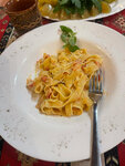 Найти легко, днем зал был пустой, встретила при входе официант. Заказывали соленья, фетучини, , салат Вацлав, и чахохбили куриный. На двоих покушать более чем, не дорого, общий счет в районе 2-2.5 тысяч вышел. Но не покидала атмосфера столовой. Еда вкусная, порции большие, на мой вкус солоновато, но всё равно не плохо. Рекомендую к посещению.