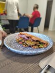 Плюсы: Вкусная и сытная еда Быстрая подача (но это час дня в четверг) Минусы: Когда пришли, посетителей в заведении не было, и перед нами никто из него не выходил. В кафе сидела одна молодая сотрудница, на вид лет 18. В телефоне. На двух столах стояла грязная посуда от предыдущих гостей, которую она удосужилась начать убирать только когда пришли мы. Один стол был завален косметикой, по всей видимости, этой же особы, ибо никого другого в кафе не было. Нам принесли морс в бутылке и два мокрых стакана. Признаюсь честно, нигде еще мне не приносили мокрых стаканов, за исключением школьной столовой. Но по ценнику я бы не отнесла это заведение к подобному формату общепита, поэтому и считаю это неприемлемым. Эта же самая «универсальная» сотрудница готовила, пробивала и отдавала заказ. Официантом ее назвать не могу, по крайней мере приличным, ибо по меню не сориентировала, не спросила, нужна ли помощь, не убрала пустую тарелку, когда принесла новое блюдо, хотя она занимала существенную часть стола. В общем, вкусно, но ценник кусается. Обслуживание не на уровне, поэтому всего 3 звезды, и больше не вернемся.