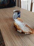 Попробовали несколько видов вафель. В целом вкусно, но хочется интереснее наполнение, чем рыба и творожный сыр. Мясная вафля лучше. Кофе вкусный. Не хватает детского меню и игровой зоны. Столов много, можно было бы заменить часть на игровую зону, мы бы точно ходили чаще. Впереди зима, будут мамы с детьми вафли есть. Персонал гостеприимный ☺️