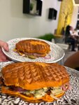 Самые вкусные вафли в городе! Сами вафельки нежные, не батон, как иногда бывает, а прям ненавязчивые, тают во рту. Начинки много, все свежее, вкус сбалансированный. Брали вафли с лососем, Молчаливый Биф, Сникерс и по флаеру получили Банановую. Лосось был нежный, свежий не пересоленый. Котлета из Бифа просто покорила. Боялась, что будет, как в большинстве бургерных, пережареная с резким вкусом. Но тут была сочная, деликатная, ненавязчивая - идеально! К Банановой тоже нет никаких вопросов. А в Сникерсе порадовала воздушная пшеница, но чуть-чуть не хватило вкуса арахиса. Ну, это чисто мое субъективное мнение) С удовольствием приведу сюда детей и друзей. Небольшая зарисовка: за соседний столик села шумная компания с четырьмя детьми. Как только принесли вафли в кафе воцарилась мертвая тишина))) все дети ели, не отрываясь, почти не дыша😅