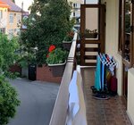 Отдыхали в этой гостинице в августе 2024,в первый раз и хочется оставить отзыв,что и как на самом то деле.Смотрю здесь много положительных отзывов,но как сказала мне сама хозяйка,к ней каждый год ездят одни и те же люди.Отдыхали 2 недели и жили в номере с видом на сквер.Территория маленькая,как и двор,и лестницы и коридор.Все хвалят двор,да там всё зелено и ухоженно,но жить то не во дворе,а в номере.А во дворе ни разу не сидели,потому что либо на море или гуляли по Лазаревскому.Во дворе я видела либо едят,либо дети в инете сидят.Теперь о номере.Вход в номер с балкона,в номере нет ни прихожей,ни полок для обуви,ни крючков для одежды.Соседи оставляли обувь на балконе.Балкон общий,узкий,ходят все боком.А когда соседи вешают бельё на сушку и вытаскивают мелкие надувашки,то просто просачиваешься когда проходишь с сумками пляжными.Вообщем надувашки и матрасы на балконе не разместишь,всё в номере.Окна номера и балкон выходят на проезжую часть.Под балконом дорога-это бесконечные машины,орущая музыка и разборки водителей.С боку гостиницы ,через дорогу подстанция скорой и инфекционной больницы.Скорые с сигналкой,народ,машины.Сам сквер(который под окнами)-проходной двор,ночью орут пьяные и музыка,воняет от туда туалетом.Очень шумное место,тишины не ждите(это проезжая часть).В номере мебель старая,журнальный столик маленький,весь ушатанный и единственный на чём можно перекусить или чай попить.Телевизор работает с перебоями,напор воды чаще струйка,матрасы на кровати и диване ужасные.Ребёнок спал на диване,на котором были каких то 2 старо-жутких намотрасника,которые выезжаю с дивана на пол.В ванной скользкий пол и старо-обтрёпанная шторка.И на минуточку,за это старьё мы платили 5.000 в сутки !Маскитных сеток на окнах нет(со слов хозяйки насекомые до них не долетают).На балконе камера,ты всегда под присмотром.Есть парковка во дворе на 6 машин с ужасным наклоном(водители поймут).Если кому то надо выехать ,то выезжают все авто!такой дурдом начинает творится.Хозяйка обзванивает и дёргает всех водителей(даже если вы на море,ещё наорёт на вас,что не берете с собой телефон )чтобы пришли и выехали,даже если твоё авто в другом ряду и не мешает выезду!Есть 2 общие кухни,на одной можно находиться,а на другой нет(указывать будет хозяйка и контролировать ,что вы кладёте в холодильник,вдруг там половинка арбуза,то убрать,а то полки сломаются!)Кухня от номера далеко,идёшь через весь двор.Она маленькая и узкая,как коридор,очень тесно(один зашел,второй в дверях).Хозяйка дёргает звонками,пишет смс в 6 утра,видимо считает ,что гостям спать и отдыхать не нужно.Поверг ещё выезд из номера,с её слов,должен быть в 8 утра!ни в одной гостинице такого выезда бредового нет!Мы на море ездим каждый год уже 15 лет,в разные места,поэтому есть с чем сравнить .В этот раз не повезло с гостиницей и номером.Вообщем,мы туда ни ногой больше!