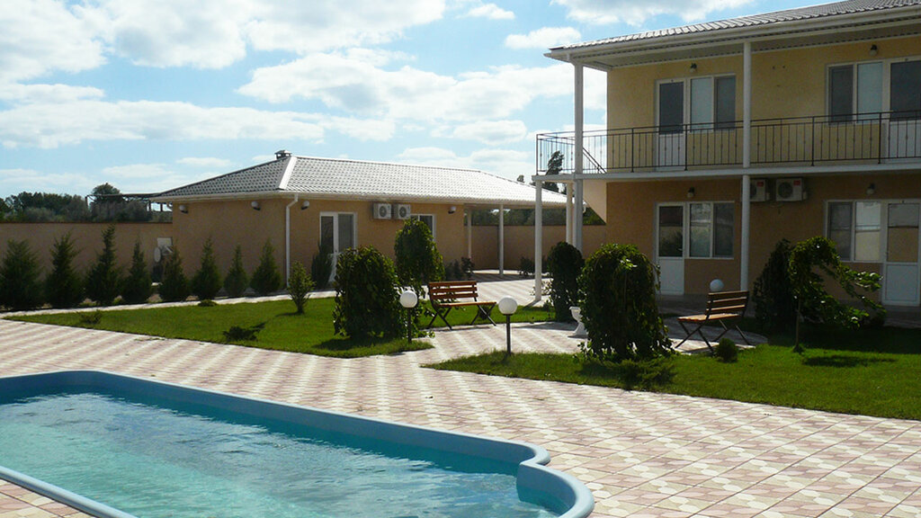 Отдыхали в июле 2022 года. Узнали об этом месте на авито. Там связь сразу с хозяйкой, минуя посредников. Соответственно и цена без накруток от всяких сайтов. Всё очень понравилось. Территория чистая, уютная, растут кипарисы. Стоянка на территории, но её не видно из-за деревьев. Имеется бассейн. Номера светлые, просторные, чистые. Район тихий. До ближайшего пляжа пешком минут 7. Большая кухня, мангальная зона. Если не хотите готовить, то Людмила (хозяйка) будет готовить для вас, за весьма небольшую цену. До Евпатории можно доехать на машине за 10 минут или на автобусе (остановка не далеко). А там и розовое озеро и Лебединое озеро и самый лучший пляж в Крыму по итогам 2022 года лазурный берег. И много чего ещё. Вообщем писать можно много и долго. Если собираетесь в этот район для отдыха не сомневайтесь, а останавливайтесь здесь.