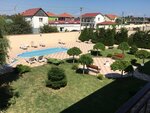 Территория очень ухоженная, номера чистые, не новые, но в хорошем состоянии. Единственное мне не понравилось отсутствие вытяжки в ванной комнате, т.к. белье сушиться только днём, вешать места мало. Хозяева приятные, очень следят за чистотой, в какой-то мере даже слишком, особенно за чистотой в бассейне. Пару дней бассейн в 19-20 закрывали, для меня это не понятно, можно и рано утром чистить, но было так. Хозяйка сама готовит, мы не пробовали, но остальные брали, выглядело аппетитно. Можно и готовить самим, кухня хорошая, всё чисто и аккуратно. До пляжа 10-15 минут пешком, можно и на машине. Пляж хороший, вода кристальная, прозрачная, людей немного, кафе есть на пляже, но еда не понравилась. Мы были на пляже Мохито, пляж БОРА-БОРА не очень, до него ещё дольше идти, минут 30. Но тоже довольно чистый. До Евпатории на машине минут 20-30. В посёлке можно просто гулять, больше делать нечего. Все остальные развлечения в Евпатории.