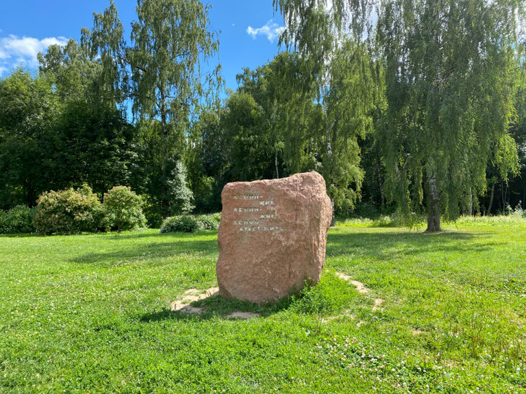 Этот камень с историей. В советское время до "90ых находился в конце дороги возле которой он лежит, на старом месте сейчас беседка.