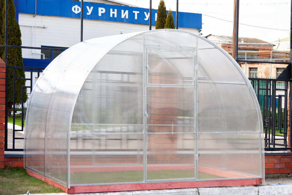 Классическая теплица арочной формы шириной 3 метра. Каркас выполнен из оцинкованной профильной трубы 20х20 мм. Цельносварные торцы обеспечивают дополнительную защиту от снеговой нагрузки и исключают провисание дверей