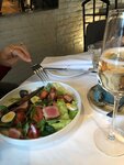Заглянули сегодня в этот ресторан. Раньше ходили сюда часто. Радует то , что уровень кухни и обслуживания сохранился на высоком уровне. Заказывали салат нисуаз с тунцом , ризотто с белыми грибами , просеко . На десерт был подан фондан с мороженым - просто шедевр. Можно смотреть картину на блюде и наслаждаться вкусом.