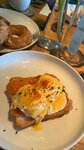 Была в этом ресторане два раза с разницей в год. В первый раз впечатления были неоднозначные, в основном вопрос был к обслуживанию. В этот раз ситуация была гораздо лучше. На завтрак были: • Брускетта с авокадо, томатами и тигровыми креветками – мне показалась немного острой, но все равно вкусной. • Яйца Бенедикт с лососем – очень вкусно! Всегда беру это блюдо на завтраках, и здесь оно одно из лучших. На десерт были: • Блины – не понравились. Был странный вкус, будто какая-то добавка присутствует. • Шоколадное пирожное Прага – понравилось. • Кольцо с творогом – просто 10/10! Это очень вкусно. Кофе хороший ☕️ Обязательно как-нибудь вернусь!