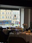 Отличное место. Встретили хорошо. Стол подготовлен красиво. Меню большое. Вид...вроде окно есть, и стол у окна, но одинтгость - спиной к окну, а второй гость - далеко от окна и кроме самого низа храма ничего не видно. В туалете все что надо есть, в том числе крем, присутвует, правда, лишний запах. А теперь к блюдам) Пока ждали блюда принесли хлеб с маслом. Комплимент от заведения. Тальятелле с лососем и красной икрой понравилось. Икры не пожалели, рыбы хотелось бы больше. Вынесли блюдо вместе блюдом для второго гостя, и соус дал корочку. Но небольшой слегка подкопченный лосось доставил удовольствие. Чай с десертом доставил удовольствие. На огромной тарелке не потерялся кусочек медовика. Медовик нежный-пренежный с мороженным, зафиксированным на карамели. Соотношение цена-качество отличное