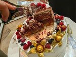Заказали торт на свадьбу загородом. Торт доставили в целости и сохранности! Все чётко по времени и по пожеланиям! Весь торт был съеден до конца дня)))очень нежная и вкусная начинка)украшения как и хотели)очень рекомендую 👍