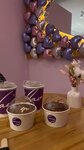 Очень вкусные десертики. Просто хочется каждый попробовать, а их оформление это просто красотища. Отличные яркие сочетания ингредиентов. Очень милый интерьер- букетики, зонтики, зеркала, скворечник- всё в моём любимом фиолетовом цвете. Однозначно одна из лучших и любимых кондитерских в городе!!)