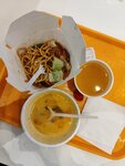 Не вкусное место. Брала рисовые пирожки (пельмешки) с овощами и том-ям. Пирожки нормальные, а суп есть невозможно. Выглядит невкусно, очень острый. В супе плавает 3 половинки черри, креветок 3-4 штучки и нечто тонко порезанное (шампиньоны? лук? хз). Можно взять рис за доп плату, но это не спасет ситуацию.