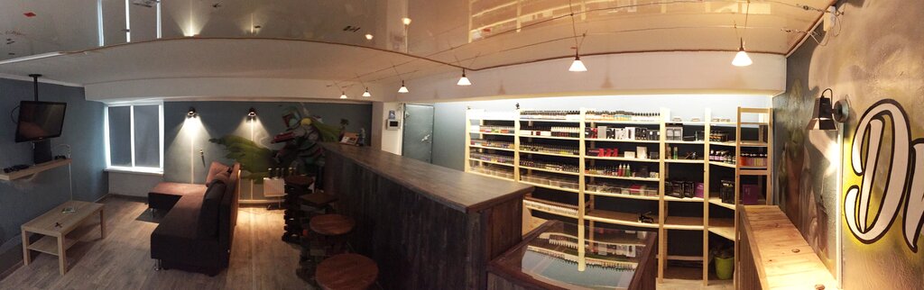 Интересное место. Всем любителям пара советую посетить. Правильная атмосфера, соответствующий тематике дизайн интерьера, приятный полумрак, вкусный туман в воздухе… короче, совсем не похоже на обычный магаз. Приятные и, главное, грамотные ребята за стойкой.