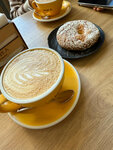 The best Americano, flat white, raf I've ever tasted. I come in a day or two. The staff is friendly sincerely and without tension, which is very pleasant. The application pleases. I save up points, and when I don't have enough pennies to buy my favorite coffee, points really save me. I don't know much about baking. I just don't have a sweet tooth. However, I occasionally take pies. I was never disappointed. I almost licked the plate at the end😅 Cottage cheese ring TOP of the TOPS🤗