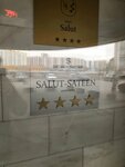 При приезде приготовьте лишний час своего времени и выпейте таблетку успокоительного)) потому что без этого, заселение пройдет очень долго и нервно. Заселялась в отель с 26-29 мая. Номер выбирала специально с плитой! Как только вы приедете в отель, вас будет ждать тётенька на ресепшне, но она заселить вас не сможет, потому что нет одобрения от самой организации "Ваш Салют". Поэтому вас попросят позвонить по номеру, который указывался при бронировании. Ответит вам молодой человек до 20-ти лет, попросит отправить ваши (и ваших гостей) паспортные данные на What's up. Но, подвох в том, что данный номер не зарегистрирован в нем и вам нужно будет постоянно названивать молодому человеку, я так понимаю, администратору, чтобы он решил вашу проблему. После получения ваших данных, он будет звонить на ресепшн, чтобы вам выдали пропуски - обычные бумажные листики размера с ладошку, так что убирайте их так, чтобы не потерять. Но в номер, вы просто так не попадете, вам нужно будет подняться на 10 этаж, постучать в какой-то левый номер, где будут сидеть 2 молодых человека и нечётко отвечать на ваши вопросы, как будто бы работают первый день. После этого, да, вы получите пароль от номера, где будет собственно ключ. Далее, читая отзывы на разных сайтах, везде говорилось о ремонте, примерно с Января месяца. Можно было подумать, что тот закончился, раз об этом не сказали при бронировании и заселении. Но нет)) Шумоизоляция ужасная, если хотите вставать в 3 часа ночи от плачущего ребенка или в 8 утра от звуков перфоратора, то это точно ваш вариант 🫡 Поговорим о самом номере, наверное единственное, что мне более менее понравилось. Как я говорила, номер должен был быть с плитой. Плита то есть, а вот в чем готовить, вопрос?) Тарелки, стаканы, да и вся кухня в целом, были в ужаснейших разводах. Холодильник - недостаточно замораживает, все продукты испортились за ночь, пришлось выкидывать. Кстати, мусор выносите сами) видимо, горничная не прилагается за ту сумму, которую пишут на сайте. В кровати можно найти чьи-то волосы, в ванной комнате - грязные полотенца с пятнами(. А, ну ещё запах канализации, когда кто-то выше этажом спускает воду в туалете, либо же моется. Телевизор, работал замечательно! Одна звезда только за него ❤️ Впечатления, к сожалению, остались своеобразные. Отдохнуть не получилось(