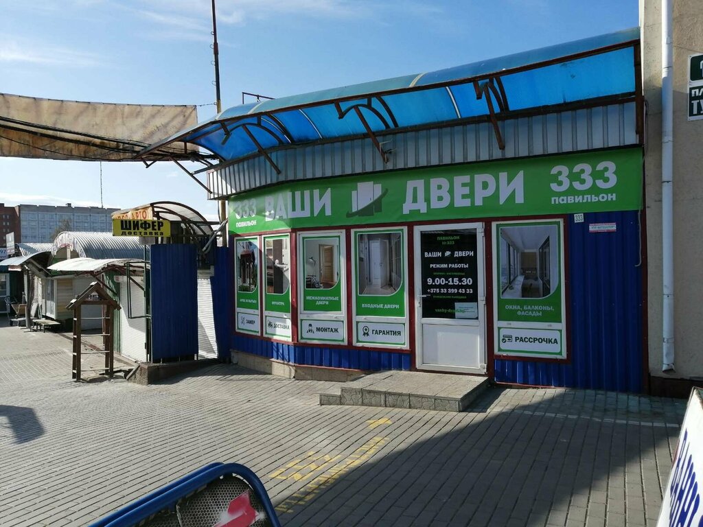Perhaps the lowest prices in the city of Vitebsk for interior and entrance doors and PVC windows in pavilion No. 333 are Your Doors. A pleasant and intelligent salesman. There is measurement, delivery and installation. There are a lot of doors available. There are installments on Halva cards.