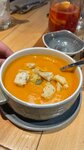 Топовый тыквенный суп, в стейк салат слишком много масло добавили (не знаю почему), порции маленькие, особенно шашлык из баранины, а так атмосферно тут находится)