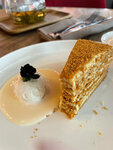 4 балла исключительно за интерьер, расположение и отношение администратора. За кухню поставила бы 3 с натяжкой. К напиткам претензий нет. При посещении заказала шашлык из телятины и спаржу с выдержанным пармезаном. Блюдо в целом на фото, но по описанию скажу так: еле теплое, абсолютно "нежевабельное" мясо и спаржа, которая как выпущенные стебли бамбука. Я попросила заменить блюдо, здесь проблем не возникало, приятная девушка администратор принесла извинения, заменили заказ на мясо с овощами гриль, как мне сказали, готовил сам шеф-повар. Но объективно, не самое вкусно блюдо, которые мне доводилось пробовать. В качестве извинений было предложено выбрать десерт, мы его забрали с собой. Это был чизкейк, тут он очень даже неплохой. Подаётся со взбитыми сливками. В целом вечер не удалось испортить, но вернуться желания нет. В заказе так же была окрошка и колбасу, со слов моего партнёра "обыкновенно, ничего особенного".