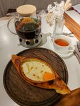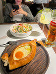 Новое стильное заведение. Интерьер классный, продуманный, светлый уютный. Персонал приветливый. Потрясающая уборная. Прям вау! Из еды пробовали только хачапури-лодочку. Никто не доел. Невкусная :) Тесто невкусное, начинка тоже. Обязательно посетим ещё раз и найдём то блюдо, которое понравится, потому что всё остальное на уровне.