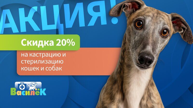 Акция в сети клиник «Василёк» - скидка 20% на стерилизацию и кастрацию собак и кошек. Акция действует в филиалах: • ул. Производственная, д...