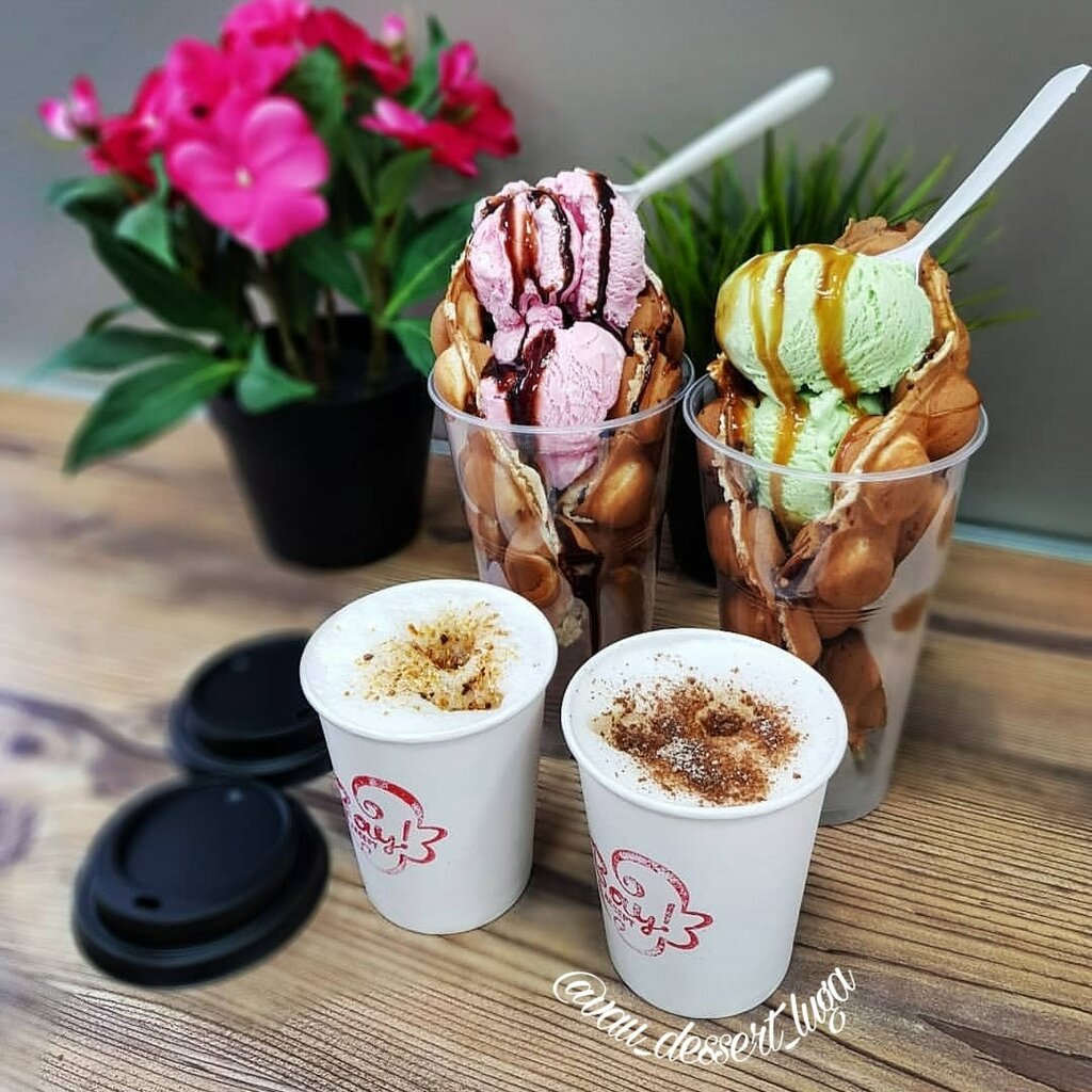 Для тех кто говорит что-то про время изготовления и принятия заказов, поясню, заведение с необычными блюдами, работающее на вкус и свежесть блюд, не ширпит который работает только на скорость. Здесь всё подается красиво, блюда готовятся у клиентов на заказ, да если вы зашли большой компанией или много народа, малое количество персонала не успеет все сделать за 3 секунды, но считайте небольшие заказы готовятся буквально 5 минут, 5 человек, заказали по паре блюд, будет делаться 15-20, не спешите, а наслаждайтесь тем что будете есть свежее и вкусное блюдо. Касаемо десертов вопросов нет, сладко, много начинки (как сливок, так и фруктов). Сытные вафли (не тоже самое что шаверма ну или шаурма, кому как удобно) тоже славна, а вафля добавит необычности. Коктейли тоже вкусные, не приторные. Корндоги вполне вкусные, хоть и сырные не прям бомба (но как любитель сыра скажу что кушать можно). Ну вот в принципе и все, за необычными блюдами сходить стоит, но если вы не спешите в горящий дом:)