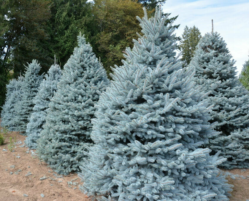 Саженцы голубой ели Глаука в питомнике ВЕДИ в Москве и области по доступной цене. Есть в наличии много видов голубых елей, размер от 30см до 300см, цена зависит от вида и размера ели.