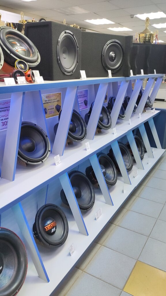 Хороший магазин, с хорошим ассортиментом авто аудио, отличный стенд с акустикой, что бы было возможно хоть как то представить звучание той, или иной акустики, так же есть стенд автомагнитол, стенд с авто усилителями, различных классов, в наличии шумоизоляция, кроссоверы, Сабы и ящики под них, фазики и все, что необходимо для постройки качественного звука в машине, в данном магазине каждый найдет интересный вариант, по своим потребностям и карману, грамотные продавцы помогут с выбором, а установщики с монтажом оборудования, у установщиков много престижных наград по авто звуку и огромный практический опыт, так же есть и сигнализации итд