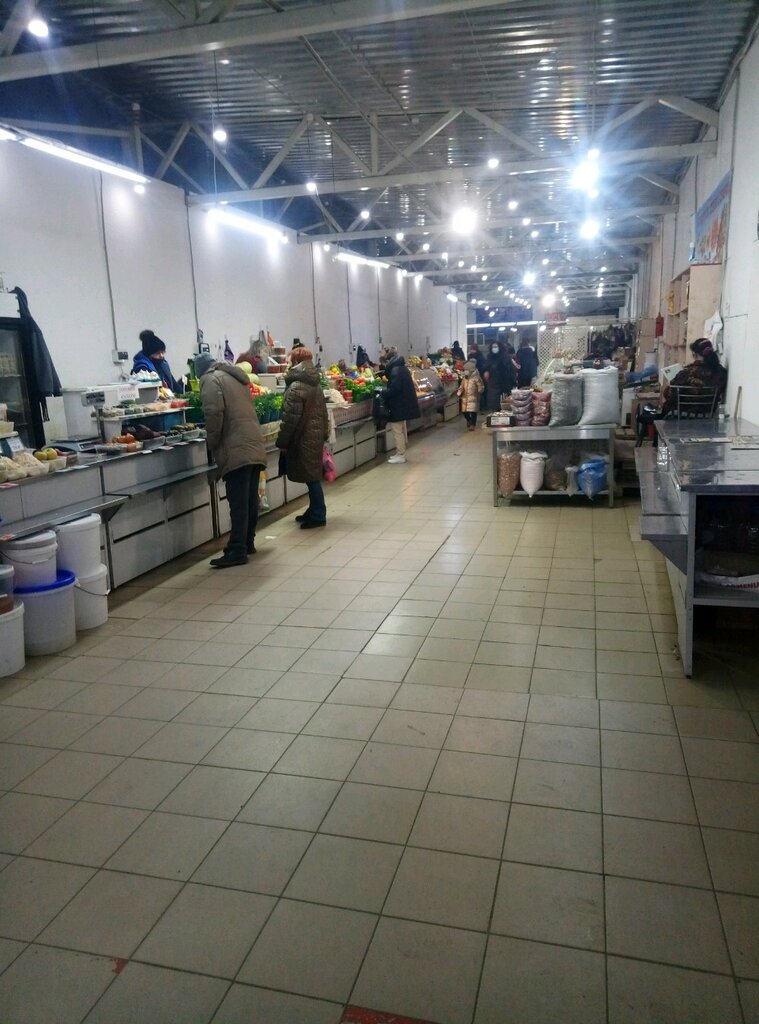 На рынке большой выбор продуктов питания мясо, рыба, соленья, свежие овощи и фрукты. Отделы промтоваров:одежда, сумки, белье. Копировальный центр, магазин все для дома. Удобное место расположение, возле дороги, общественный транспорт.