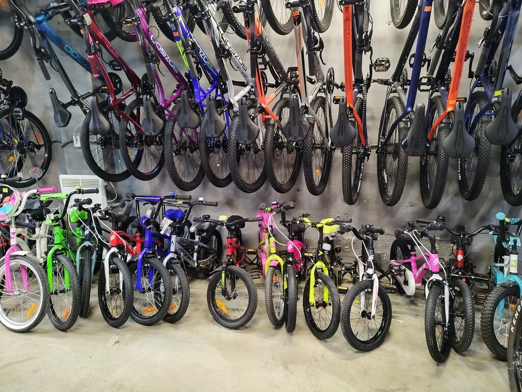 Range of bikes:tandem, women's, mountain, urban, children's, electric bicycles, road bikes, sports, BMX