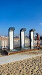 Единственный пляж в Витязево, где я обнаружил бесплатные душевые кабинки. Кабинок как таковых нет, но есть три отличные лейки на стойках, из которых льёт не очень прохладная вода. Никаких палаток с напитками или мороженным на пляже нет - говорят, что это распоряжение местной администрации. Песок достаточно чистый, но очень много водорослей, когда идёт период цветения воды, а это сентябрь как правило. Лежаки по 400р./день. Опять же про сентябрь говорю. Как в "высокий" сезон по ценам не знаю - скорее всего подороже. На выходе с пляжа конечная остановка маршрутки №23, что очень удобно.