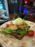 Вкусный завтрак! Вафлия с креветками , драники с семгой, рисовая кашка - все очень вкусно. Попробовала Фанагория Брют - очень хороший брют, любителям итальянского просеко рекомендую попробовать российское, достойно.