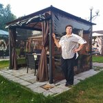 Отличное заведение. Вчера был семейный ужин. Всё на самом высоком уровне! Блюда разнообразные, очень вкусно! Благодарность поварам!!!Персонал на 100 баллов. Все вежливые и приветливые. Официант Михаил молодец 👍👍👍, внимательный, но не назойливый. Отдыхали в беседке на природе, виды великолепные, пруд 👍. Был небольшой дождь, но всё продумано, беседка закрывается плотными занавесями! Короче рекомендую всем!!!
